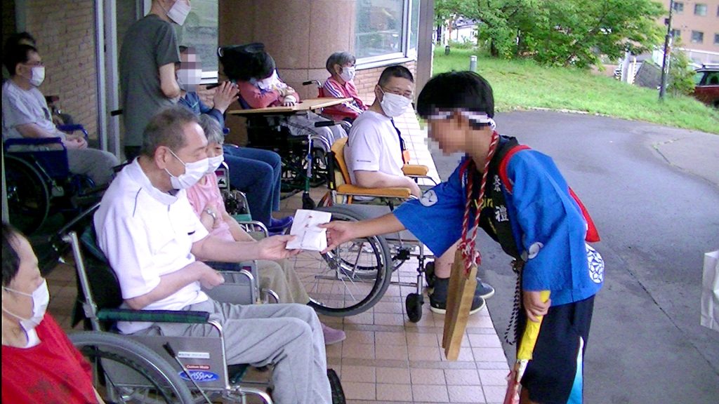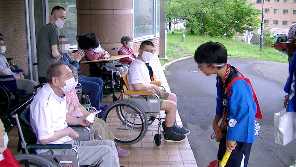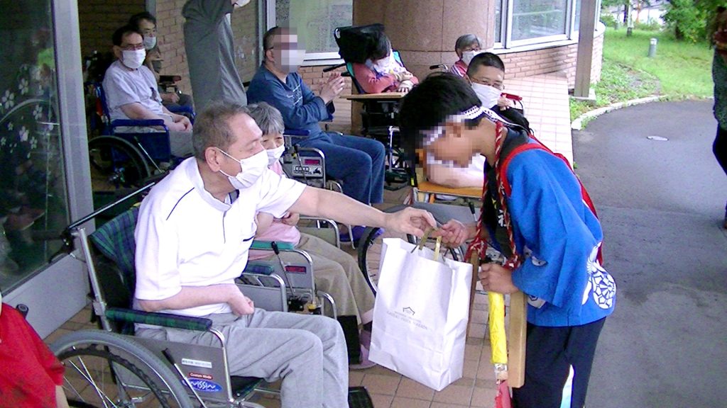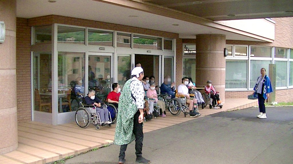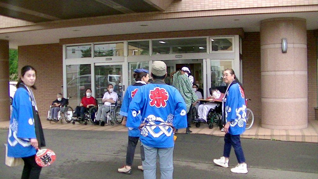 施設近くの朝里神社のお神輿で、近くの朝里町会の方々が施設を訪ねてくださいました。