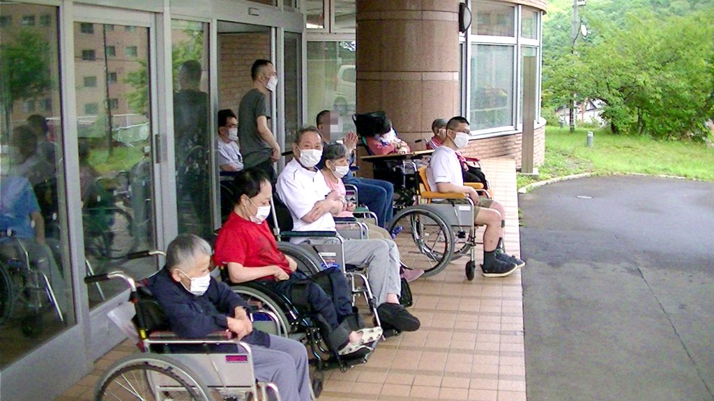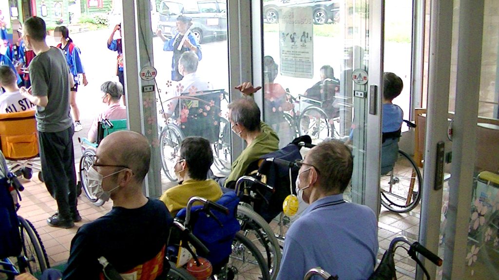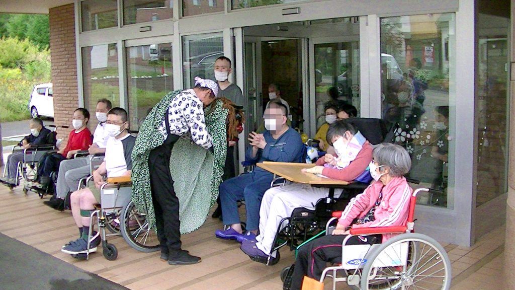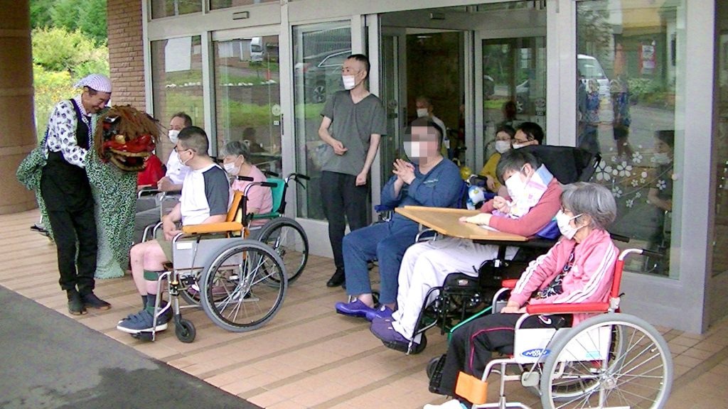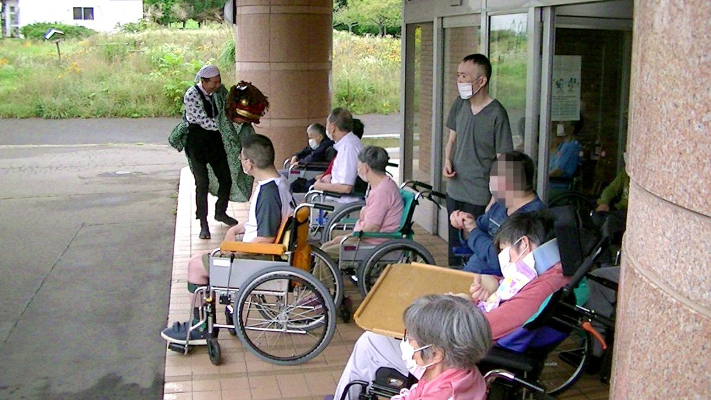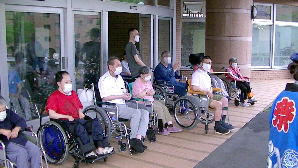 施設近くの朝里神社のお神輿で、近くの朝里町会の方々が施設を訪ねてくださいました。