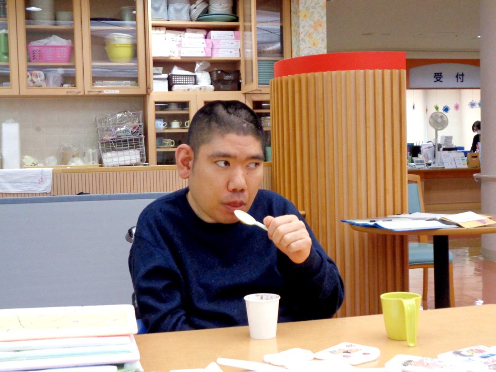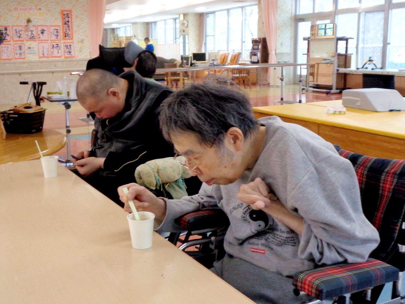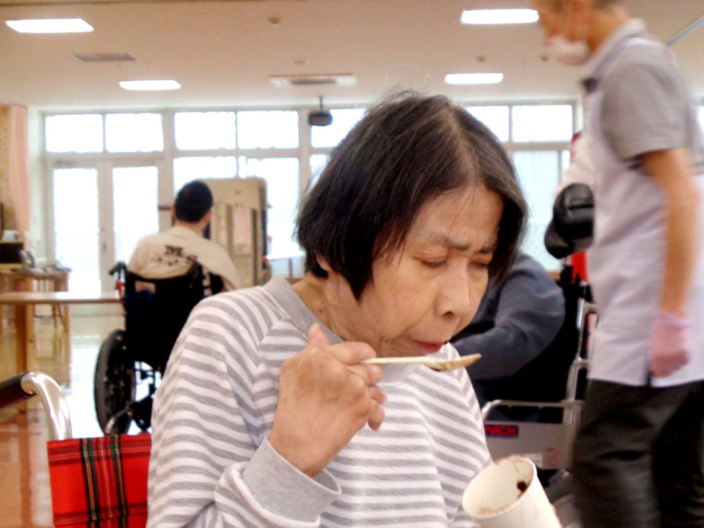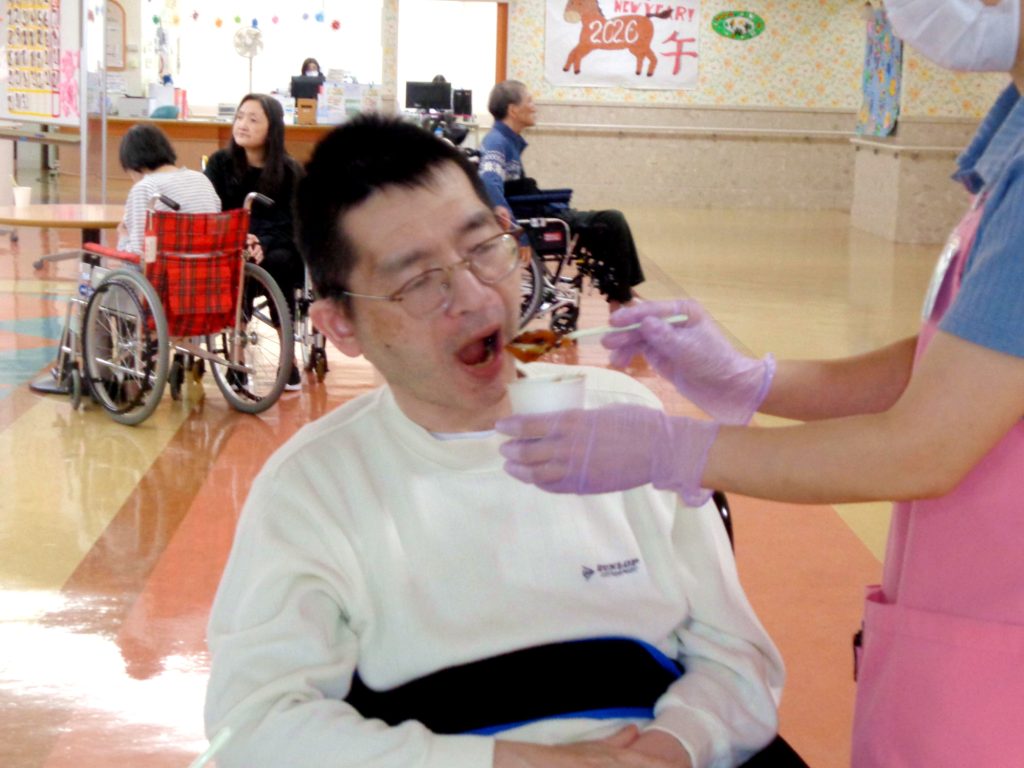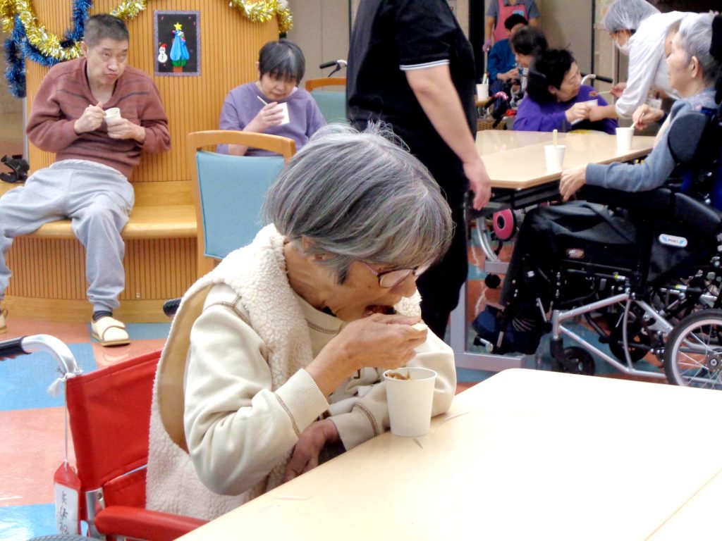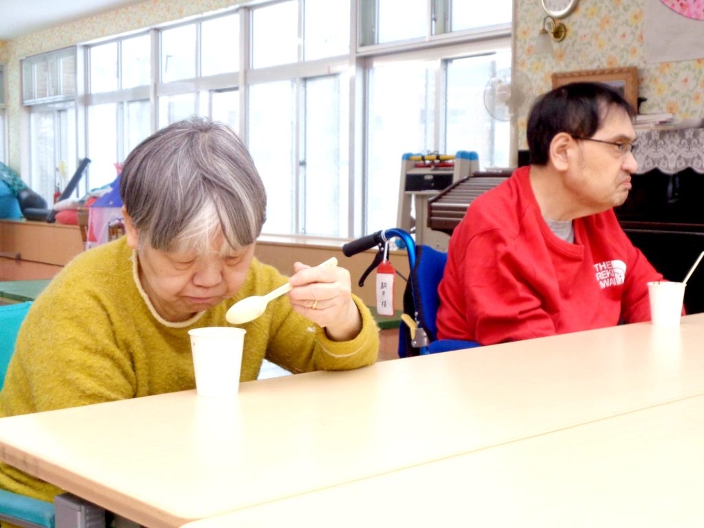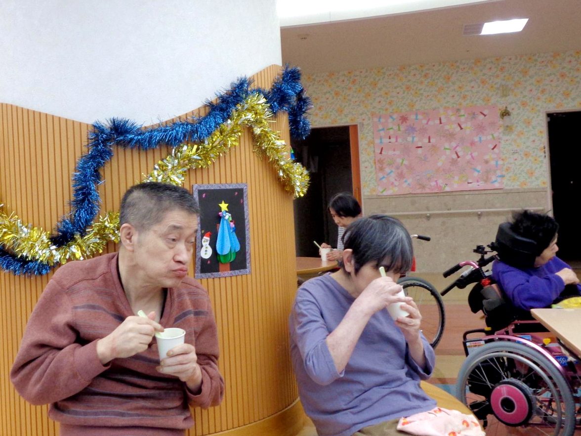 12月22日冬至の日に、日中活動としておやつ提供、カボチャ団子のお汁粉が