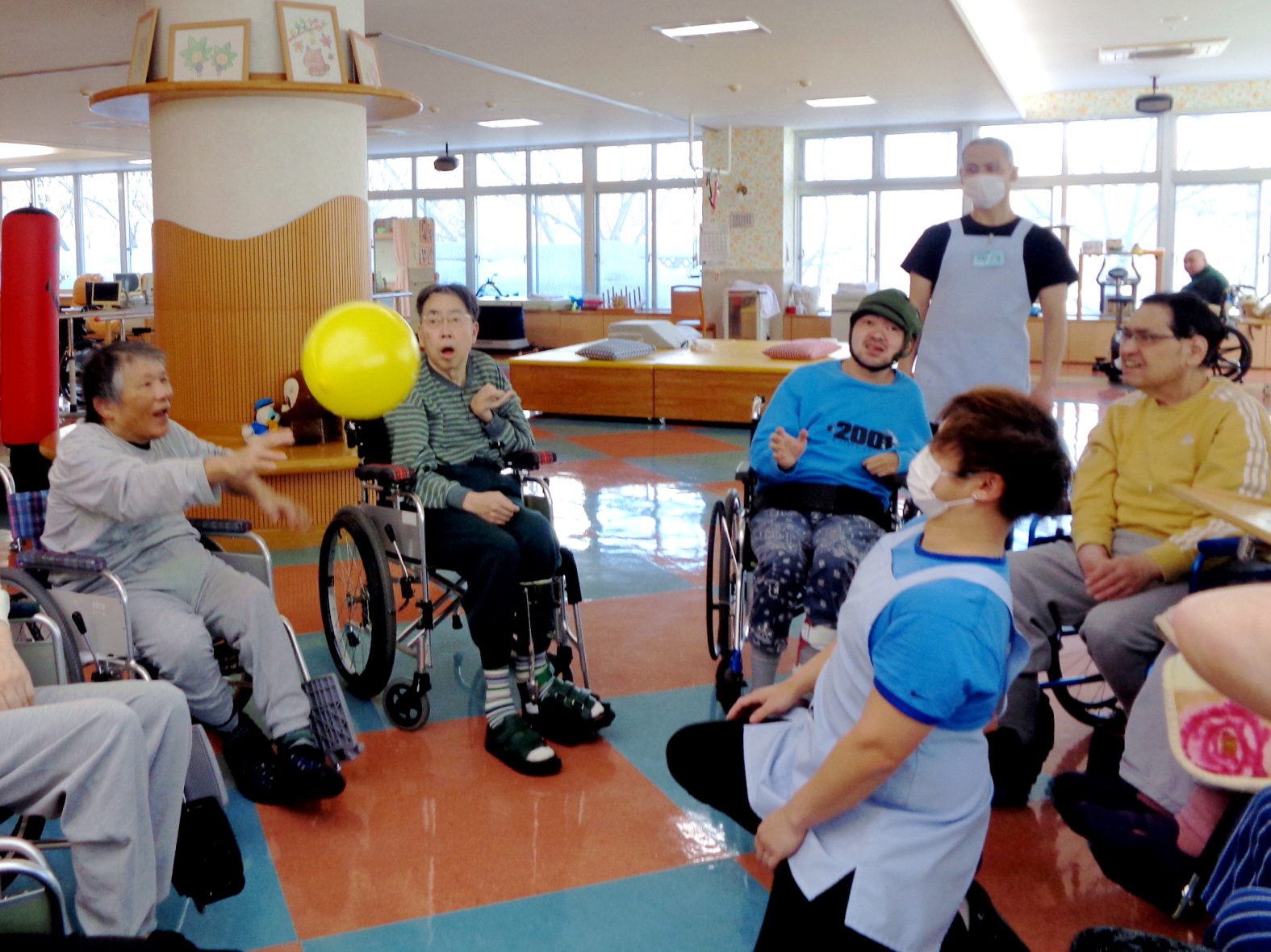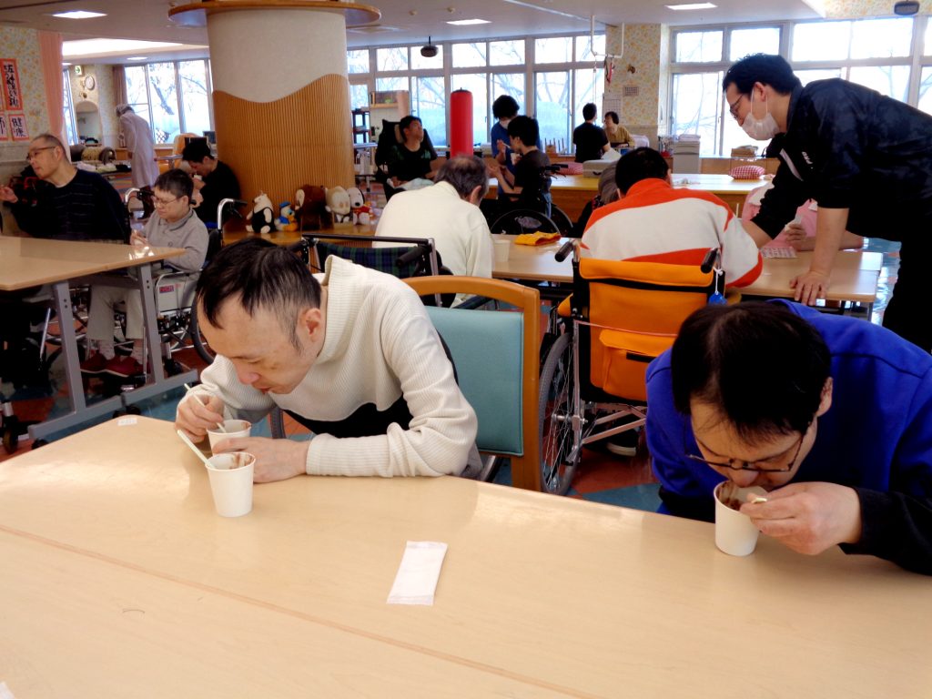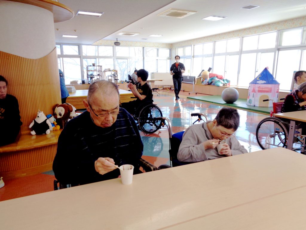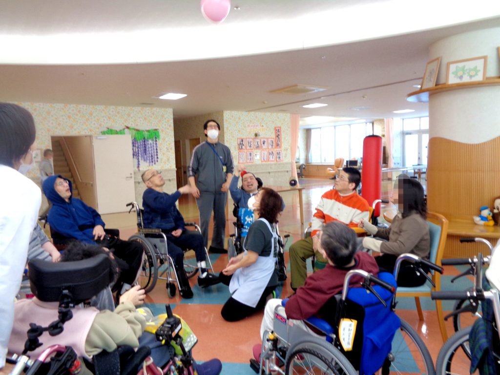1月末の日中活動では、風船バレー、お汁粉提供が行われました。